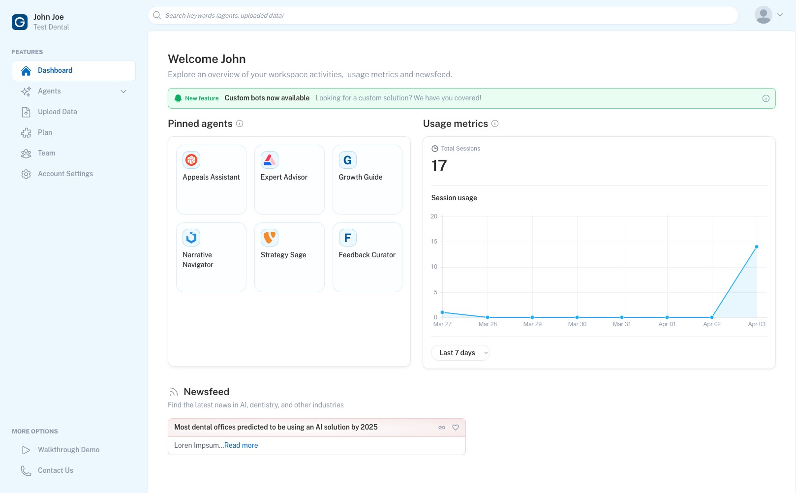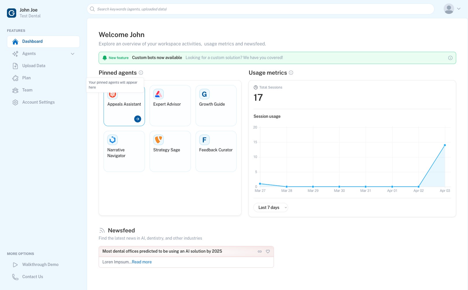 You can find your pinned agents on the dashboard.